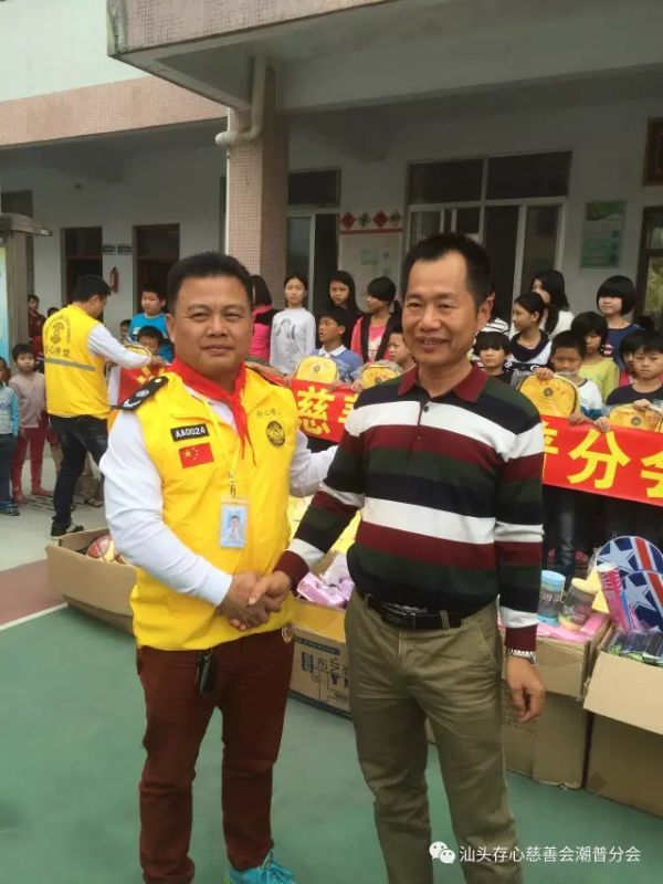 捐献文体用品,情系山区学子,1月9日,存心潮普分会到普宁南径神山村小学进行了助学活动,为孩子们送上书包、笔盒、学习用笔、篮球和羽毛球拍等文体用品。