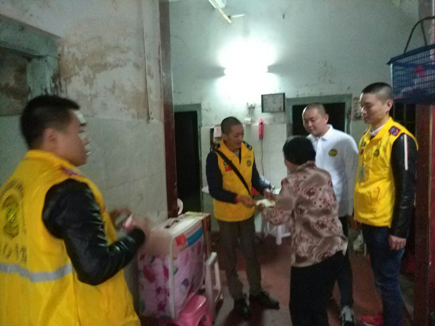 江燕芝本人患有慢性病,其儿子患有精神疾病,均丧失劳动能力,义工们将善款和爱心物资送到他们家中。