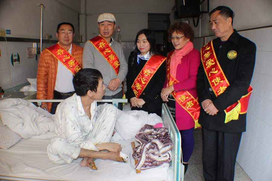 今天(2月27日)下午,存心筹爱心使者徐英豪组长带领徐庆瑞、叶丽芳、石逸、肖瑞展等爱心使者专程到市二医院看望肖楠,送上社会各界通过“存心筹”募集到的100511元(壹拾万零伍佰壹拾壹元)。居住濠江区茂北社区的肖楠,男,23岁,父亲于2013年不幸过世,母亲于2012年出交通事故受伤致残。2016年厄运再次降临,肖楠被检查慢性肾衰竭(尿毒症期)肖家连年来灾难重重债台高筑,没法支付高昂的医疗费用,现感染严重下肢动脉硬化闭塞症,右下肢2/3/4足趾坏死感染,已做截趾手术,左下脚又不幸血管收缩导致脚指坏死,还要维持血液透析,全家陷入绝境,在万般无奈之下只能办理出院,同时向存心善堂求助,善堂马上发起“存心筹”网络救助平台,在社会各界的大力支持下,短短一周时间筹到以上款项。今天下午爱心小组将善款送到医院肖楠手中,为肖楠的医疗提供了强有力的保障,肖楠全家感谢万分并要求存心善堂向参与这次捐款的各位大德善长表示万分感谢。