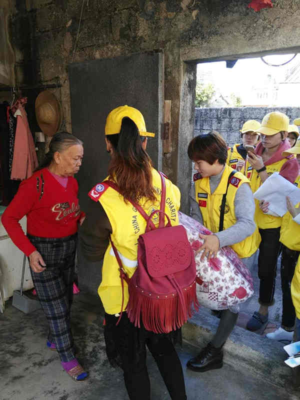 已是冬季,乍寒还暖,本次活动惠及15户贫困家庭,延续之前固有的大米、方便面等物资外,还增加了一床棉被,让这些贫困户过上一个温暖的冬天。