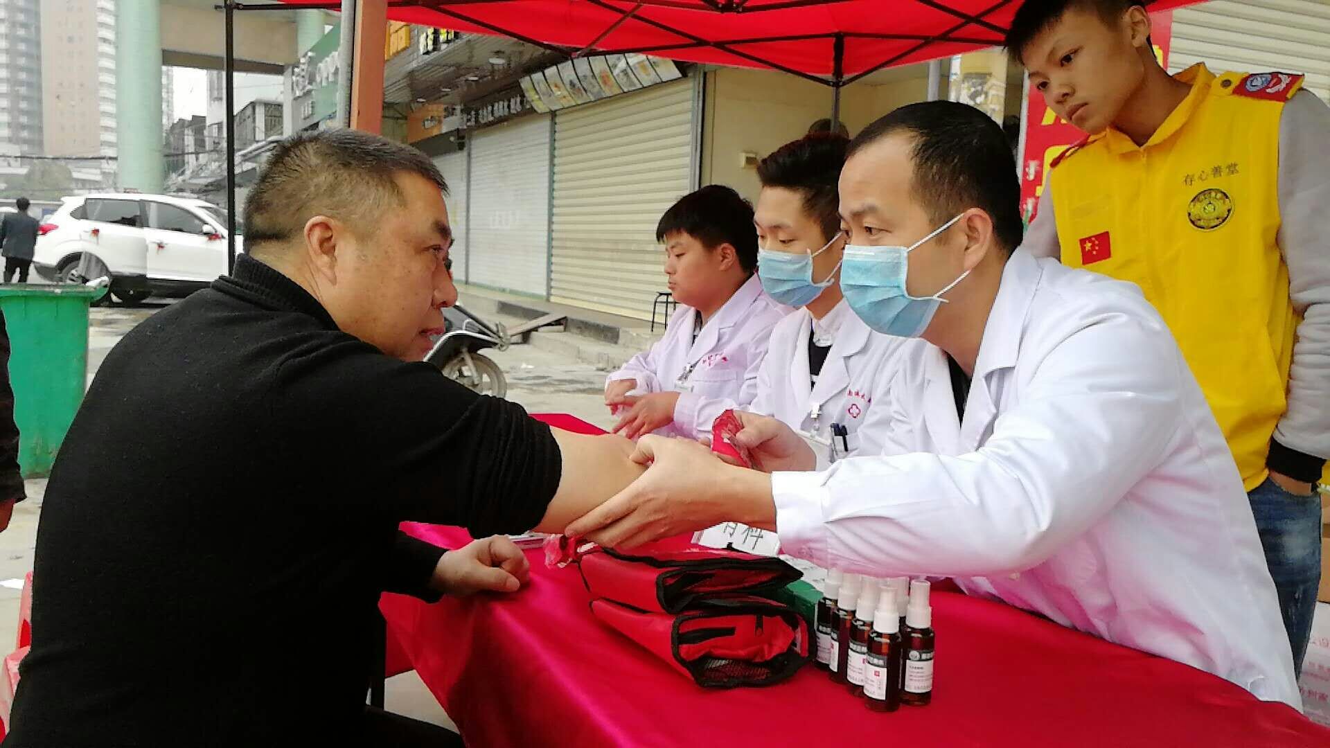 2018年1月28日上午,存心榕江义工联盟中队携手潮南振武骨科医院在西胪综合市场大门口展开爱心公益义诊活动,在寒冷的天气里为乡民送上温暖!义诊项目包括(骨病咨询与治疗、肩颈腰腿疼痛理疗、血糖检测、血压检测)针对有需求的乡民,免费赠送便药。
