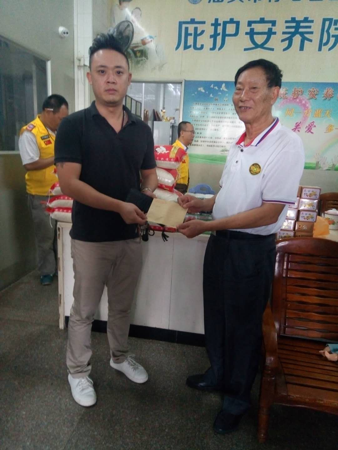 10月25日下午,存心祥德义工队携手三家爱心单位来到存心庇护安养院,一起为老人们送来的了温暖和节日的问候。汕头市和众投资有限公司爱心款1000元;汕头市金紫世家辉煌电影城的余辉标先生送来了30张影票以及爱心款1000元,并送20张影票赠给存心祥德队和庇护院的护工们;画虾大师一善轩转送来一副虾画作品;汕头市中山同益美尔奇童装商行送来橄榄菜3提;多位爱心人士也送上爱心款共500元。同时,存心祥德队送来队部由上月底菩提禅居水忏的剩余10包米,以及上月先行购买的冲剂20 盒,给予老人们关怀。