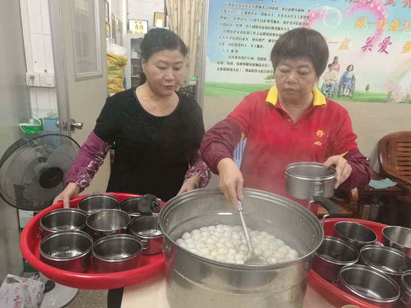 当天一早,庇护院的护工们就上市场采购材料,大家一起动手,制作了汤圆和香芋饼,煮熟后,将香喷喷的汤圆和香芋饼喂到住养孤残人士的嘴里;中午,为他们准备是虾仁、蟹脚肉等海鲜,丰富了他们的午餐。