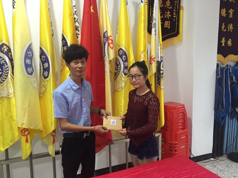 尽管受台风影响天下大雨,但不能阻挡群隆孝爱基金爱心使者关爱寒门学子的脚步。9月3日上午,群隆孝爱玩具公司群隆孝爱基金的爱心使者来到存心坝头义工联盟中队为2位学子送上助学金,每人3000元,为这些家庭困难的学子加油鼓劲。