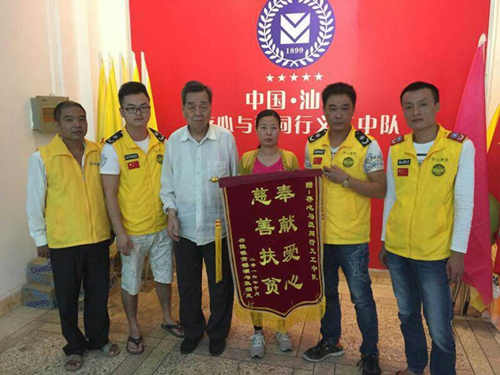 10月16日上午,张娟凤给存心与爱同行义工中队送来爱心锦旗,并感恩所有爱心人士的帮忙。