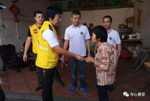 秋高气爽,阳光明媚。本次活动如往常,身着白T恤黄马褂的存心义工们走街串巷,把大米、食用油、存心义工捐赠的袜子等爱心物资送到潮阳贵屿镇、潮南陈店镇、仙城镇、司马浦镇、普宁南径镇等350多户贫困户手中。同时扶贫对象中每一位70岁以上的老人都收到潮阳办事处送上祝福红包一个,祝福老人家身体安康,节日愉快。有部分义工来到贵屿敬老院打扫卫生,并送上慰问金及粮油等物资。