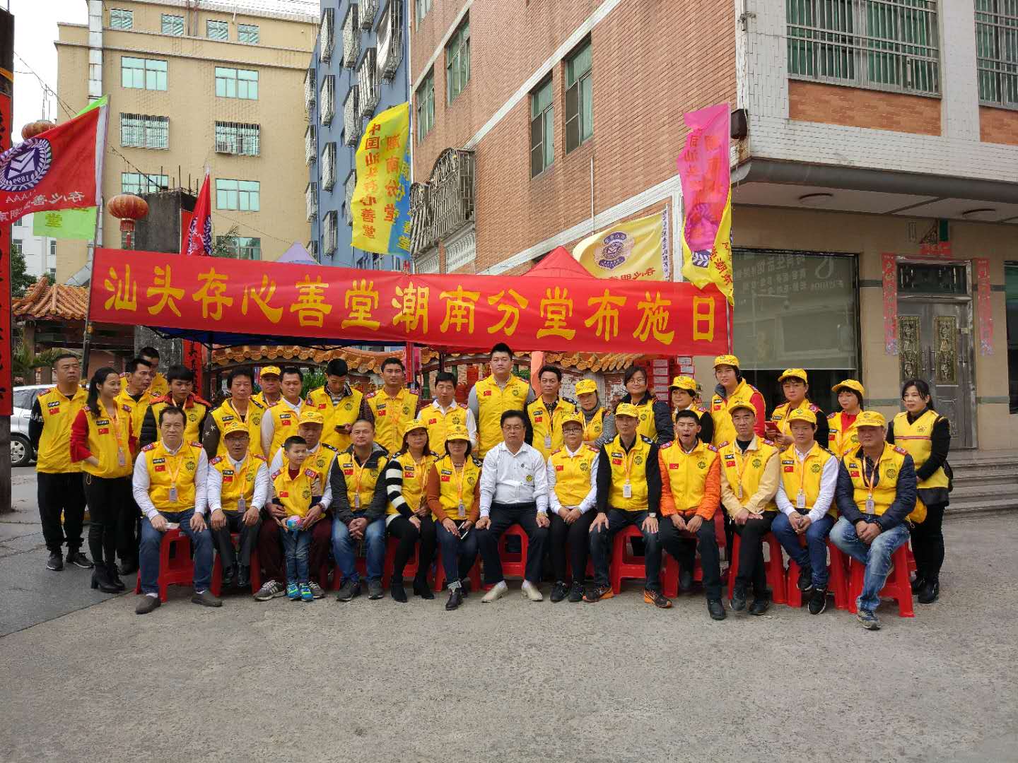 2018年01月25日,是存心善堂潮南分堂固定发放爱心物资帮扶日,清晨一大早郭伟明主任组织存心潮南义工社的义工们,举行升国旗仪式,并在潮南区峡山街道环山路石部头南田风景区侧门口布置发放现场340户,将大米、吉祥面、食用油、洗洁精、衣服等爱心物资发放到困难人士手中。
