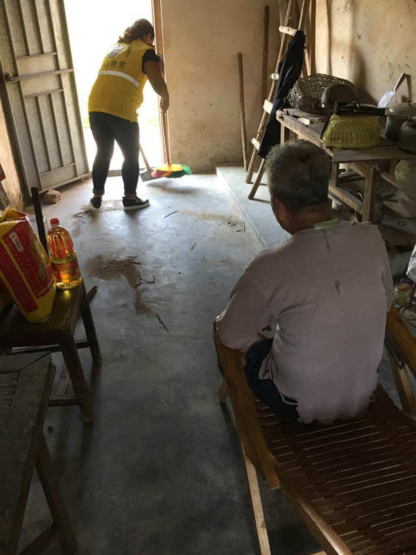 义工们带了一些爱心物资,帮他们清洁卫生,让老人加能在一个干净清爽的环境生活,同时也陪着老人家说说话,了解一下他们的身体状况,帮他们解解闷,把老人家当成自家长辈一样。