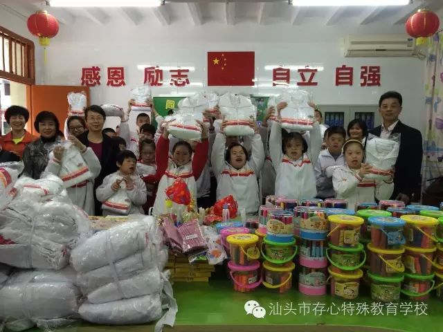 冬日暖阳,12月29日,存心特殊教育学校的学生们都喜气洋洋,排队领取老师分发的暖心礼物。原来,这是东厦小学203班“爱心小蜜蜂”、老师和家长来到存心特殊教育学校,为这里的特殊朋友们送来了温暖的祝福,将捐赠的100件夹棉新校服、学习用品和各类玩具分发到这些特殊朋友的手中。