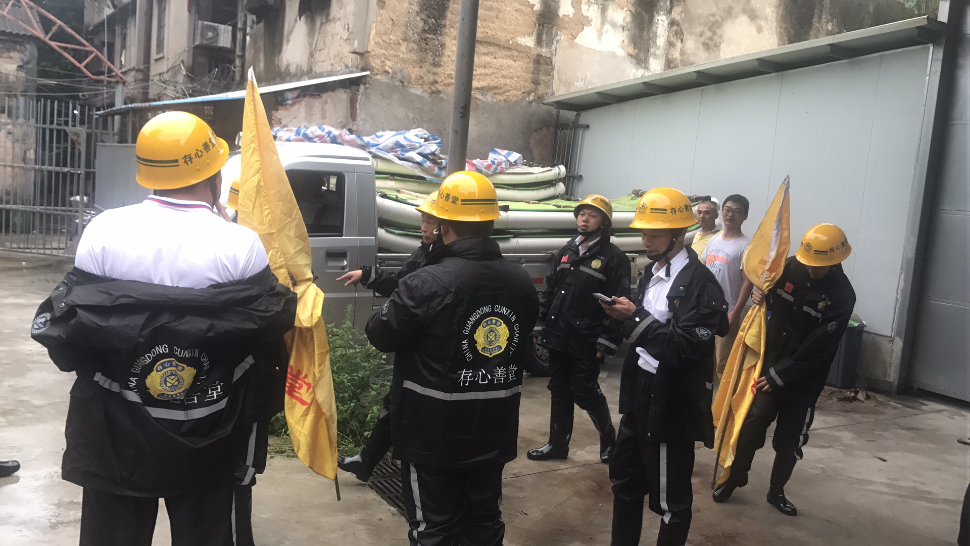 当天,存心的义工们第一时间奔赴各地开展救援活动,减缓灾情造成的损失,存心潮普分会23支义工队的义工前往井都、峡山、谷饶、麒麟、南径和贵屿一带,对旧厝危房的扶贫户进行走访慰问,以及转移遭遇水浸的老弱病残的人群;存心潮南服务队于早上10点集结义工队员30多人,分别前往峡山汕尾学校帮忙转移被困学生,到广汕公路、广祥路、环美路等内涝较严重的地方指引疏导车流,帮助车辆浸水熄火车主将车推至无浸水路段,救援100多批次;存心潮阳服务队大概20人左右,分成四组前往贵屿和普宁等地走访了十几个低洼村庄,转移和救援80多人次;存心乡贤、为民、凤山义工服务队,组织起了多名义工冒雨奔赴东凤学校,协助学校疏通下水道,排泄过多积水,清理已经折断的树木折枝,并对存在折断隐患的树枝进行卸除,排除安全隐患。