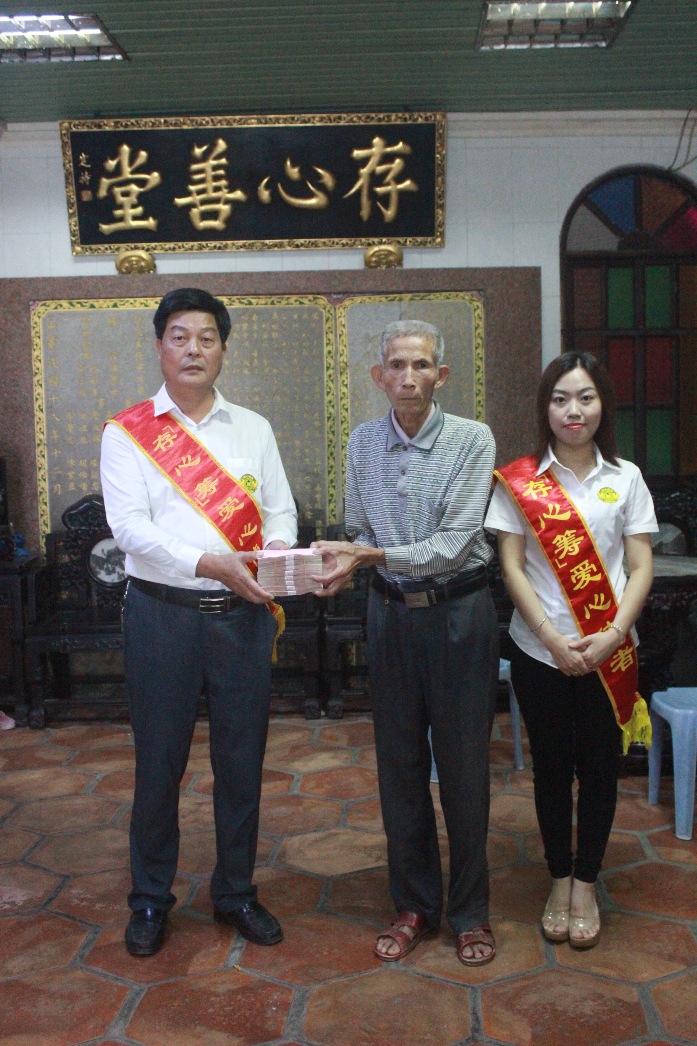 有困难找存心;陈俊德,男,16岁,惠来隆江人,今年9月份时在家中摔倒后,不省人事被紧急送医,经过医生检查被确诊为脑出血,因病情严重,医生马上为其进行手术治疗,其家庭经济收入微薄,家中父亲患病在家休养长期需服药治疗,前期治疗费用已花光家中所有积蓄,家庭经济困难,无力承担后期高昂的治疗费用,幸得向存心惠来办事处求助,善堂为其发起存心筹,2018年10月27日,存心筹爱心使者小组将社会热心人士捐赠的人民币捌万壹仟玖佰玖拾壹元(81991.00元)善款送到其亲属手中,缓解他们的经济压力。存心在行动,如果您身边有需要帮助,可关注存心善堂公众号或汕头橄榄台进入存心善堂求助,我们就在您身旁。