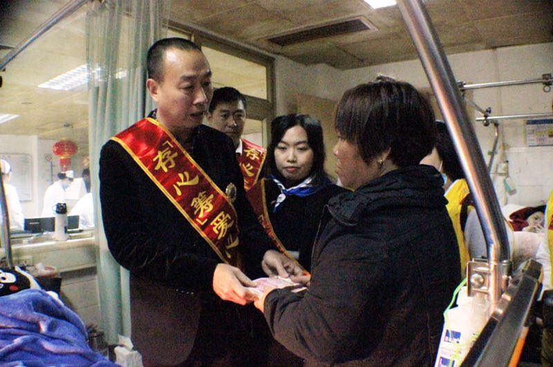 詹李荣,28岁,家住潮南区陈店镇内新村,去年外出到福建省打工。2016年11月在福建石狮市某酒店7楼坠落,多处骨折,脊椎受损,脑部也受到严重撞击。处于昏迷状态,其父亲詹应文,现年63岁,前年查出尿毒症,每星期需透析3次;妻子方映妹患子宫癌,去年做切除手术,全家有8个孙子,大的12岁,小的不足3岁。詹李荣本是家里唯一的顶梁柱,由于突发事故的发生,高昂的医药费让这个原本非常困苦的家庭临近崩溃,万般无奈下,只好向存心潮普分会求助,杨佑铭会长联系汕头中心医院把詹李荣接到该医治,并发动会员募捐将6万8千多元做为前期医疗资金,经医院的全力医治,目前情况大为好转,但由于病情严重,治疗费用巨大,杨会长将情况向总堂汇报,善堂启动“存心筹”救助平台,得到社会各界的大力支持,截至今天共筹得善款27743元,由于目前詹李荣新期医疗费用完,医疗资金出现断层,詹家债台高筑贷借无门只好再次求助存心善堂,善堂马上启动医疗应急垫资措施,今天由爱心小组徐英豪带领爱心使者一行五人到中心医院进行慰问和及时送上2万元的垫付款,缓解了詹家的燃眉之急,“救人第一,急人所急”为存心第一己任,詹李荣后续的手术,医疗,康复的医疗资金缺口巨大,期盼得到你的支持和帮助,让这个不幸的家庭能得以生存。
