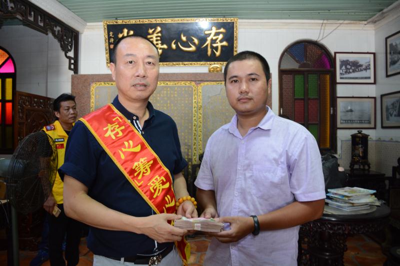 当天,存心慧善联盟义工中队的杜明队长和义工们,将澄海慈善爱心群为金戊才筹措的4160元爱心款同时送到其儿子的手中。