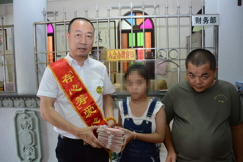 有困难找存心;谢宝平,男,38岁,澄海人,今年9月份突发不省人事,被诊断为脑梗死,需做手术,其13岁的女儿患肾病综合症,一家人靠低保和做零工维持生活,十分贫穷,只能向存心善堂求助并发起存心筹,10月11日,存心筹爱心使者小组在徐英豪组长的带领下,将社会热心人士捐赠的人民币玖万零玖佰多元(90933.85元)善款送到其亲属手中,缓解他们的经济压力。存心在行动,如果您身边有需要帮助,可关注存心善堂公众号或汕头橄榄台进入存心善堂求助,我们就在您身旁。
