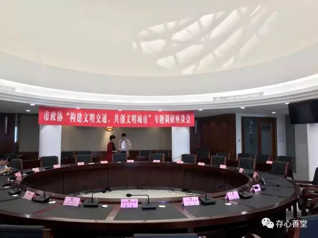 11月28日下午,市政协召开“构建文明交通,共创文明城市”专题调研座谈会,市政协副主席谢永忠参加会议,邀请各商会、公益慈善组织等组织代表围绕创造文明良好交通环境进行座谈交流,存心慈善会派员参加座谈。