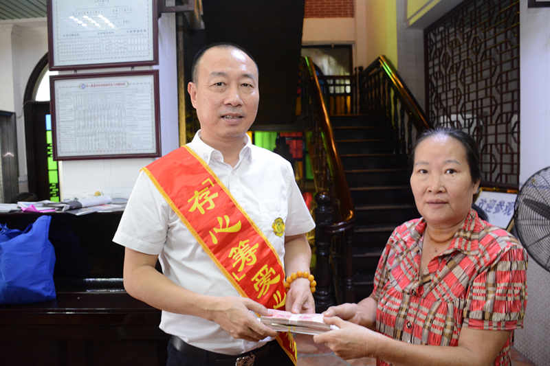 有困难找存心;纪御香,54岁,汕头长厦人,特困户,曾因脑出血引起小中风,今年9月份被查出胸胃内结结性甲状腺肿、异物甲状腺,需要做手术切除,其夫几年前因胃癌去世,两个女儿相继患精神病,生活无法自理,经济困难,只能向存心善堂求助并发起存心筹,10月11日,存心筹爱心使者小组在徐英豪组长的带领下,将社会热心人士捐赠的人民币壹万捌仟捌佰多元(18855.38元)善款送到其亲属手中,缓解他们的经济压力。存心在行动,如果您身边有需要帮助,可关注存心善堂公众号或汕头橄榄台进入存心善堂求助,我们就在您身旁。