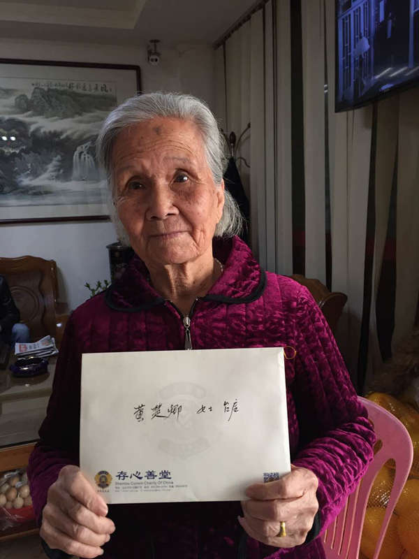 “黄楚卿老阿姨是个热心公益的好人,她年岁虽已大,但凡澄城周边需要帮助的困难人士,她都不留余力给予帮助,并发动爱心人前来献爱心。”这是存心澄海办事处马才发主任对黄楚卿阿姨的评价。