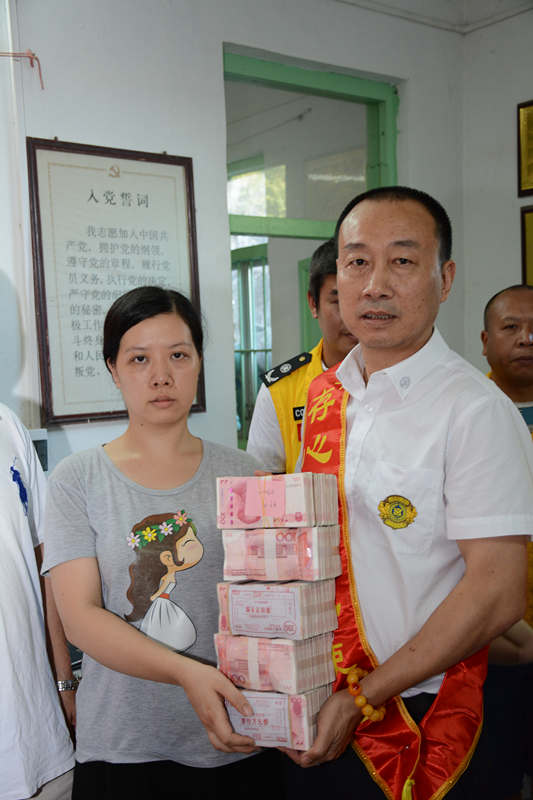 郑丹,男,33岁,潮州湘桥人,陶瓷厂包装工,妻子在家照看两个儿子,父母早丧,现赡养中风的90岁祖父和86岁祖母,是家里的唯一顶梁柱,今年7月份被诊断为鼻咽癌中晚期,一家人陷入困境,只能向存心凤城义工队求助,善堂为其发起存心筹,9月16日,存心筹爱心使者小组在徐英豪组长的带领下,将社会热心人士捐赠的人民币伍拾万余元(500000.29元)善款送到其妻子手中,缓解他们的经济压力。存心在行动,如果您身边有需要帮助,可关注存心善堂公众号或汕头橄榄台进入存心善堂求助,我们就在您身旁。