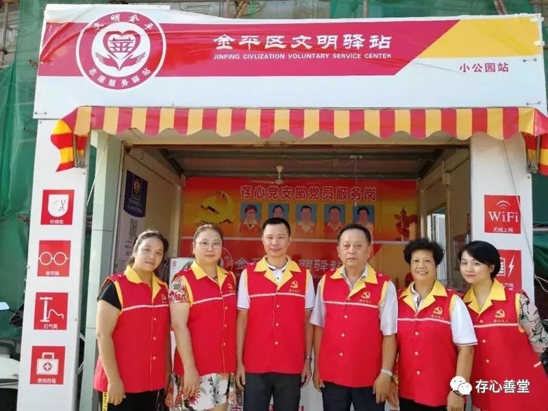 存心党支部结合特殊节日广泛开展党员服务活动。金平区小公园开埠区文明驿站自去年4月份正式启动以来,存心党支部和开埠区志愿者们长期在此驻点开展维持交通秩序、环保清洁、免费凉茶、免费面包、应急救援等志愿服务,在文明驿站的岗位上默默奉献,为汕头创建全国文明城市增添一道亮丽的风景线。