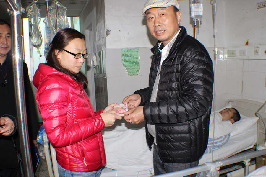 2月25日下午慈善会徐英豪副会长、徐庆瑞秘书长和郑荣茹冒着严寒专程到中心医院慰问张盛龙,“人有旦夕祸福”张盛龙,今年31岁,双亲早年去世,单身,平时靠打短工维持生计,生活十分艰难。今年2月1日张盛龙骑车在金砂西路不慎摔倒,导致腿骨摔伤及昏迷,经医生诊断病情十分严重,可能需要截肢,需尽快做手术,尽量保证双腿的完整,行动功能根本不能恢复,目前医疗费以用了十多万元,本人根本无能力垫付医疗费用,后期医疗费缺口非常巨大,无奈之下唯有向存心善堂求助,善堂马上开展救援措施,善堂徐副会长冒着严寒风雨到医院送上一万元先垫付医药费,同时拟帮张盛龙发起“存心筹”筹款。