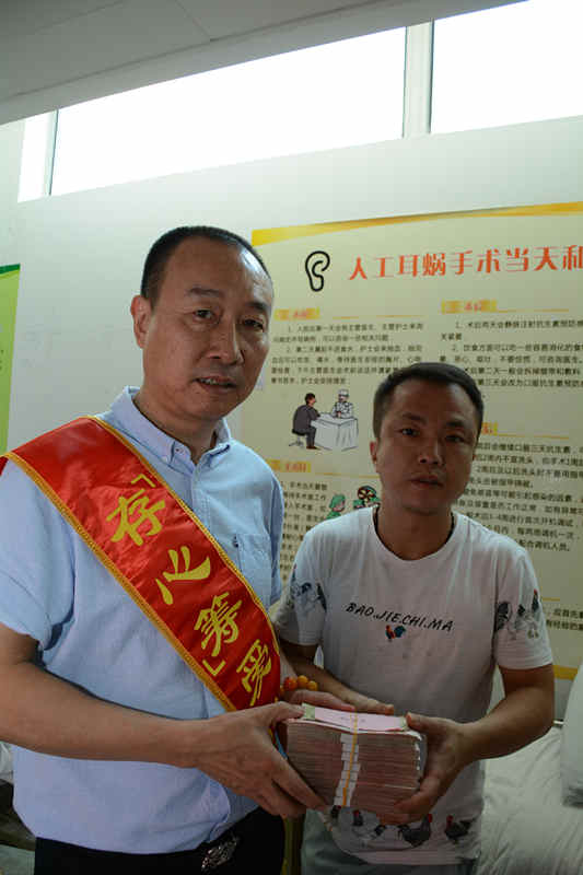 有困难找存心;余佳炜,13岁,潮阳海门人,患有重度惑音神经性耳聋,需尽快做人工耳蜗手术,否则有可能一辈子耳聋,其父母在外打零工,无力承担医疗费用,只能向存心海门办事处求助,善堂为其发起存心筹,8月17日,存心筹爱心使者小组在徐英豪组长的带领下,将社会热心人士捐赠的人民币捌万多元(80002.96元)善款送到其亲属手中,缓解他们的经济压力。存心在行动,如果您身边有需要帮助,可关注存心善堂公众号或汕头橄榄台进入存心善堂求助,我们就在您身旁。
