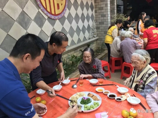 金秋送爽重阳到,金桂飘香百寿欢。九九重阳节来临之际,存心养老院为住养老人举办了“爱在重阳节,共享百寿宴”活动,旨在增强住养老年人的获得感和幸福感。存心党支部书记吴宏文,存心善堂徐庆瑞秘书长,存心善堂理事陈涵鸿,存心同力队,健康队,善乐队以及社会热心人士近百人参加活动。