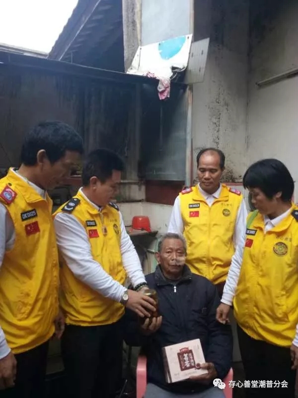 陈花猪,贵屿华美社区人,老伴早年因病离世,儿子也不在人世,剩下儿媳这个劳力打工来维护家庭,抚养两个孩子上学,是华美社区的困难户,农历十月二十六日的爱心物资发放活动当中,陈碧妹队长在带队慰问这一家时,了解到陈花猪老人最近因病无钱医治后,向存心潮普分会杨右铭会长汇报,经批准后在存心潮普心德队内发起筹款,队员们踊跃捐款,并于今天将3800元医助金和药品、生活物资等送到陈花猪一家的手上,让他们感受到社会大家庭的温暖。