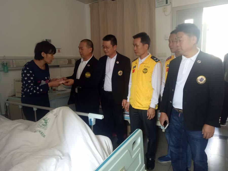 2月18日下午,存心潮阳办事处苏健隆主任带领工作人员到汕头大学第一附属医院慰问苏加丰,为他送去一万元助医金。