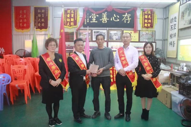 有困难找存心;陈炎辉,男,84岁,潮南两英人,今年11月份因脑血管堵塞,被紧急送往医院,经检查患有脑血栓,需在医院进行住院治疗,其儿媳妇16年患上乳腺癌,需进行长期的治疗,其孙子多年前因患有精神障碍需长期进行治疗,家中因治疗其儿媳妇、孙子已经负债累累,家庭经济困难,无力承担后期高昂的治疗费用,幸得向存心贵屿办事处求助,善堂为其发起存心筹,2018年12月1日,存心筹爱心使者小组在徐英豪组长的带领下,由杨右铭副会长将社会热心人士捐赠的人民币拾贰万叁仟柒佰贰拾伍元(123725.00元)善款送到其亲属手中,缓解他们的经济压力。存心在行动,如果您身边有需要帮助,可关注存心善堂公众号或汕头橄榄台进入存心善堂求助,我们就在您身旁。