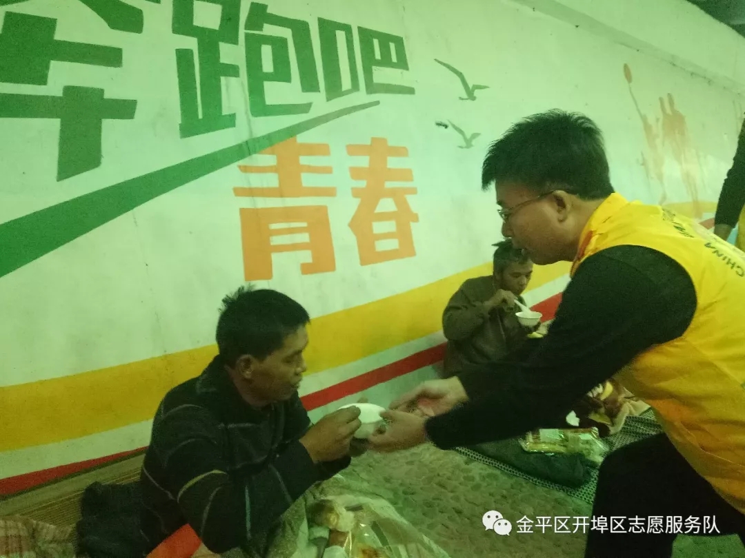 昨晚,存心同力义工队组织义工,沿着跃进路、中山路、汕樟路、金砂路巡查和救援流浪人员,义工们细心询问他们的状况,为他们送上了专门准备好的热腾腾糯米粥、面包和棉被。