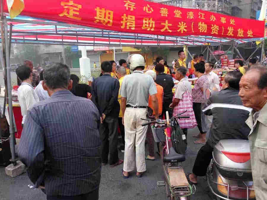 活动现场刚在布排之时,早早地就有人前来领取物资,当义工们忙碌完布排工作,更是人头攒动,众多困难家庭纷纷前来领取,对濠江办事处的义举感激不尽。