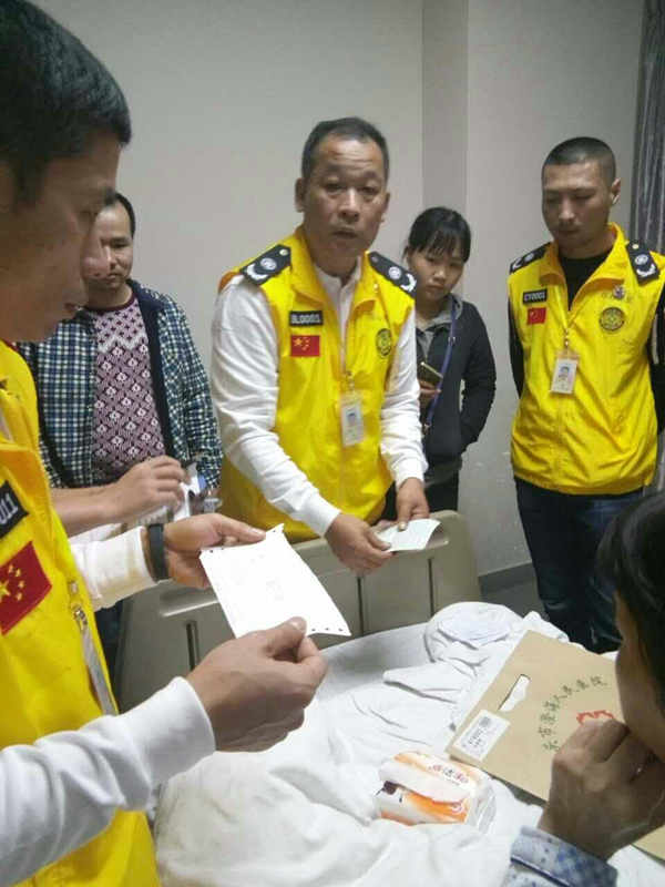 存心坝头义工联盟中队得知并核实后,于当晚组织义工前往医院慰问看望黄楚辉,并送去2000元慰问金。