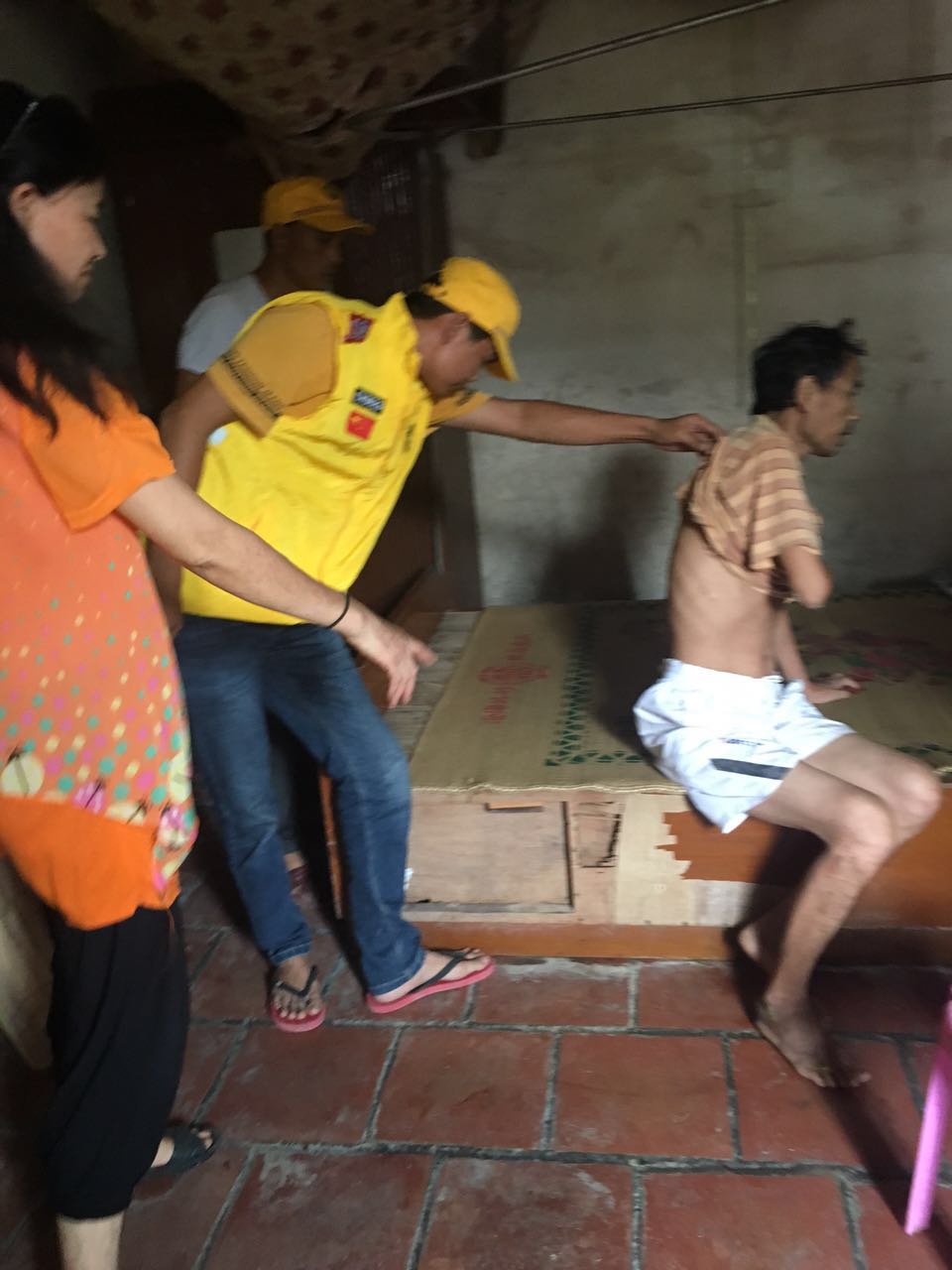今年49岁的詹楚光,因一个月前发生交通事故卧床不起,伴膀胱压骨引起小便失禁,存心团结义工联盟中队的义工们得知情况后,于8月21日携手陈潮才医生前往他家中,为其免费为诊断,并经过半个小时的推拿治疗,取得显著的效果。