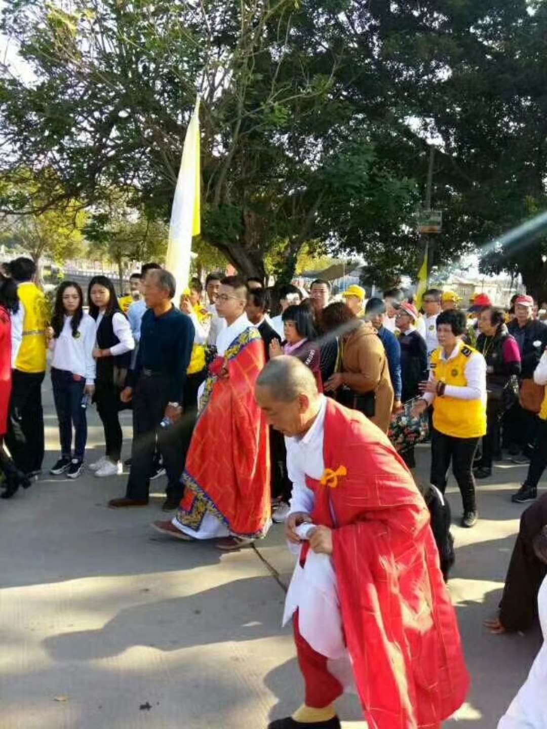 慈悲加被,祖师临纳,安邦佑民,增福祯祥。12月29日(农历丁酉年十一月十二日)上午,存心善堂全体理事、会员、各分支机构、各义工队和八方信众三千多人赴潮阳和平大峯风景区朝拜宋大峯祖师,仪仗浩荡,蔚为壮观,蔡木通会长行三步一跪礼,至诚拈香,虔诚朝拜,天现七彩瑞气,祖师灵光普照,天降吉祥!全体参加信众将获福无量,增福添慧并祈祷汕头全市人民平安,百业兴旺,经济腾飞,家家迪吉,人人祯祥,万事如意!