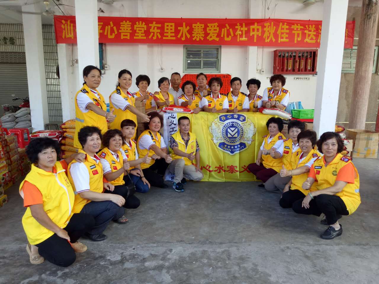 中秋佳节将至,9月24日,存心水寨爱心社在队部举办了中秋佳节送温暖活动,为澄海东里水寨周边的贫困家庭、孤寡老人以及残疾人士送去大米、食用油和面食等爱心物资,惠及100多户贫困户,同时为樟林东和敬老院的老人们送去关怀,为老人测血压,关心他们的身体健康,给予大家节日问候。
