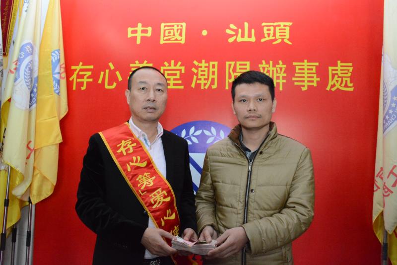 有困难找存心;郑苏琴,女,53岁,潮阳金浦三堡村人,今年11月份因身体不适住院,被确诊为胆管癌,家中有4个小孩在上学,其丈夫右脚生骨刺行动不便,家庭经济困难,幸得向存心潮阳办事处求助,善堂为其发起存心筹,12月10日,存心筹爱心使者小组在徐英豪组长的带领下将社会热心人士捐赠的人民币壹万柒仟肆佰多元(17454.03元)善款送到其亲属手中。缓解他们的经济压力,存心在行动,如果您身边有需要帮助,可关注存心善堂公众号或汕头橄榄台进入存心善堂求助,我们就在您身旁。