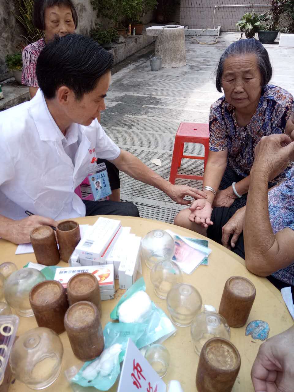 医生们分别给闻讯前来的病患者进行诊断,问闻望切,根据患者不同的症状使用不用的治疗方式,十分细心。陈世伟医生还带来了自己的药物,免费施赠病痛患者,减轻他们的病痛,减轻他们的经济负担,这种怀瑾握瑜的高尚情操,令人敬佩。