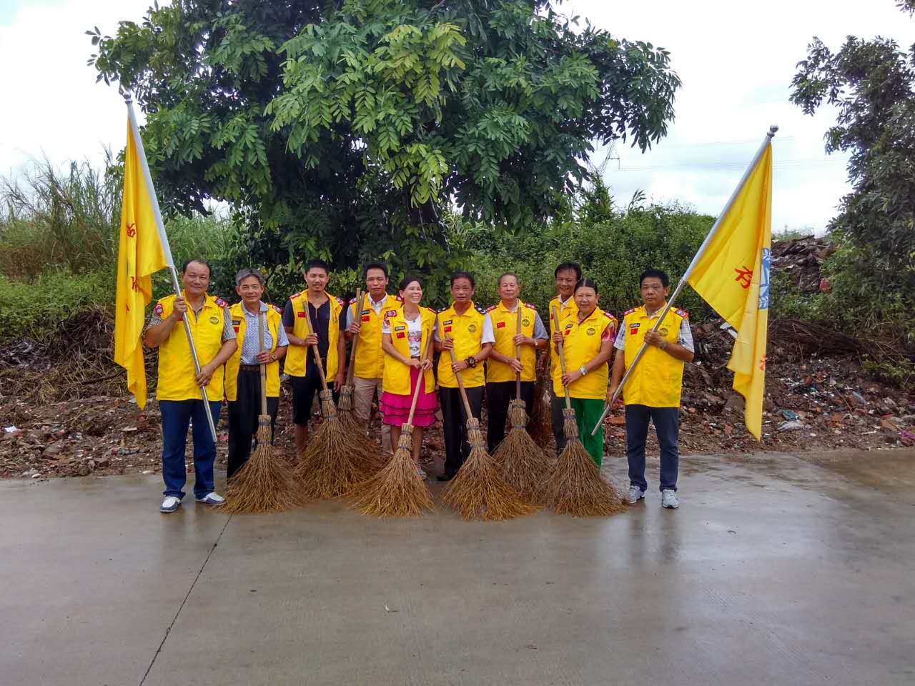 恰逢阴雨天,马路潮湿,杂草枯枝被风雨刮散一地,义工们不辞辛劳,将垃圾和枯枝落叶清扫干净,让过往的车辆行驶更加放心,让交通更加畅通无阻。