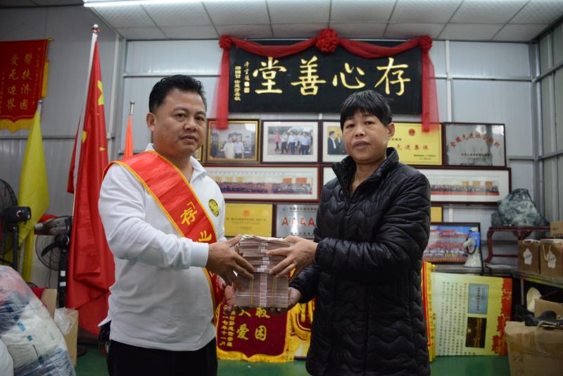有困难找存心;钟柔娟,女,49岁,潮阳两英美林人,患慢性肾炎十几年,4年前被医院诊断为尿毒症,靠透析延续生命,近期病情加重,需做肾移植手术,找到肾源却无法支付高昂的医疗费用,幸得向存心潮普分会求助,善堂为其发起存心筹,12月5日,存心筹爱心使者小组在徐英豪组长的带领下,由分会杨右铭会长代表社会热心人士捐赠的人民币壹拾捌万玖仟多元(189165.93元)善款送到其亲属手中。缓解他们的经济压力,存心在行动,如果您身边有需要帮助,可关注存心善堂公众号或汕头橄榄台进入存心善堂求助,我们就在您身旁。