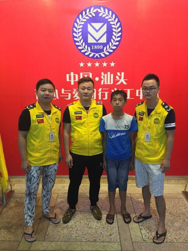 义工在活动中发现谷饶车站有一位流浪的小孩,躲在屋角处哭,全身发抖。经队员了解情况,小孩名叫:郭梓兴,贵屿镇南阳联堤人,当天上午在家出来后迷路。义工马上带他到附近的队员家里安顿,为他安排食物、衣服,经过耐心的询问,小孩子告诉众人他父亲叫:郭顺光,但是无法说明家庭具体地址。