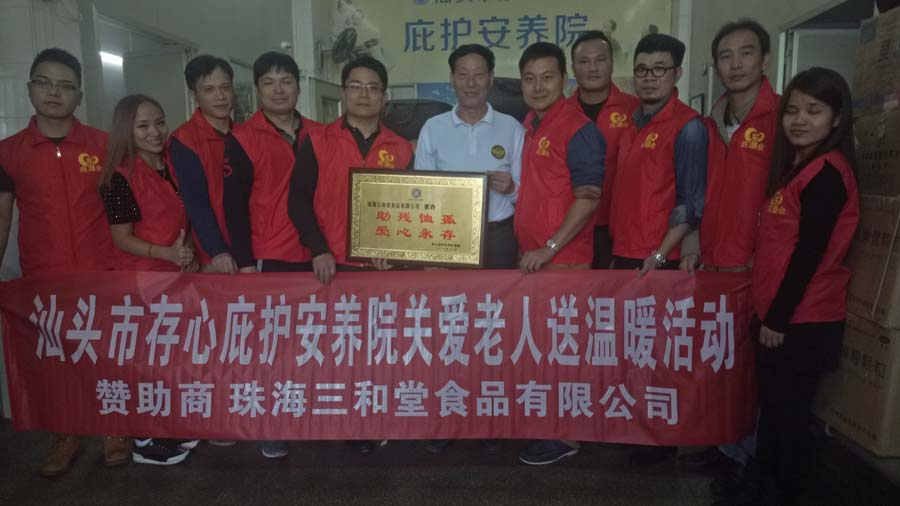 1月1日下午,深圳罗湖东湖商会黄志健会长与义工们慰问存心庇护安养院,送来130箱珠海市三和堂食品有限公司捐赠的八宝粥。