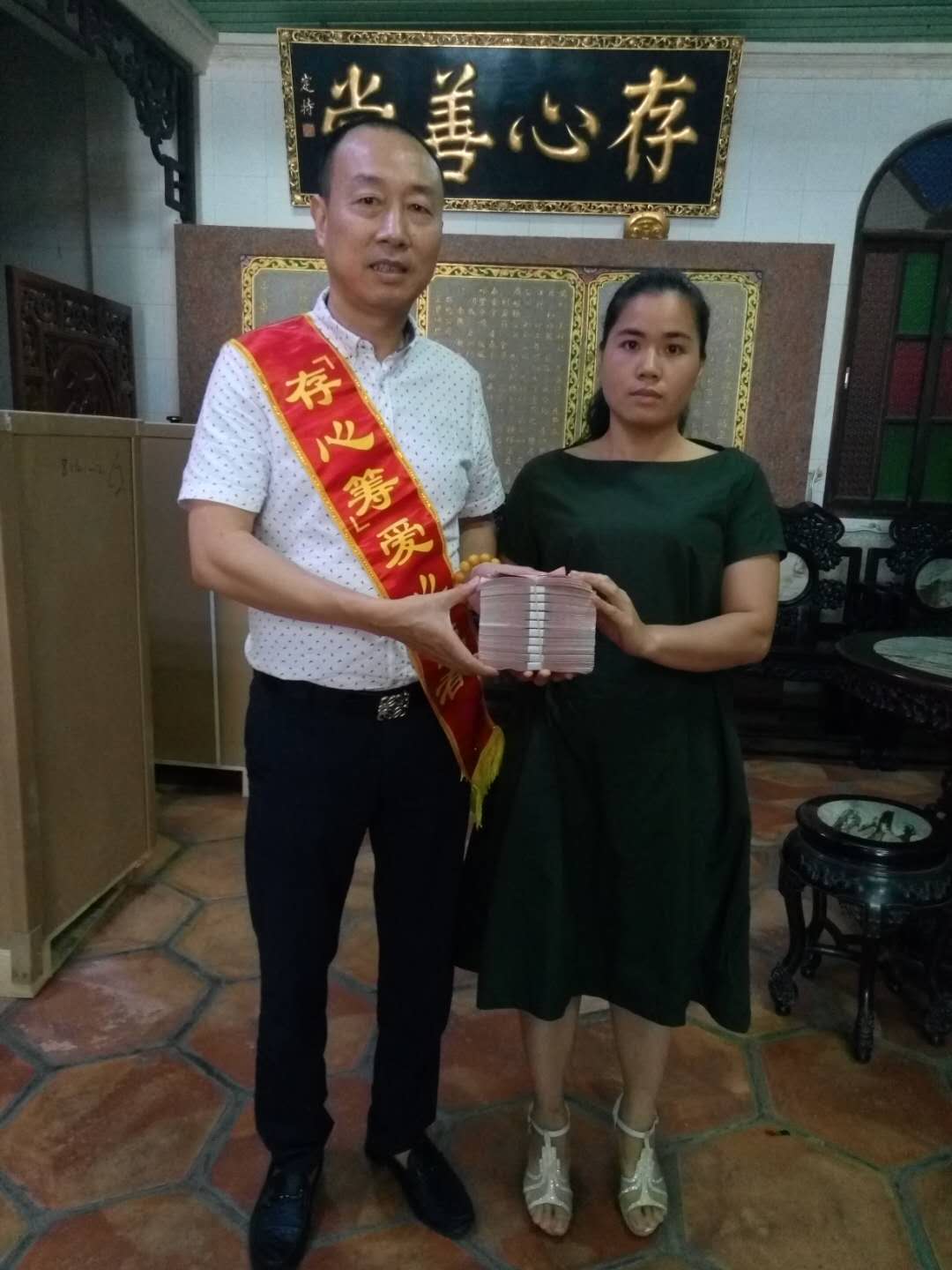有困难找存心;王秀卿,女,63岁,惠来县仙庵镇华清村人,30几年前做过子宫肌瘤手术,今年9月份被诊断为肝内胆管穿化、腹膜炎、肾功能不全等重症,其一家是贫困低保户,经济重担压在唯一的养女身上,无力承担高昂医疗费用,幸得向存心善堂求助并发起存心筹,10月22日,存心筹爱心使者小组在徐英豪组长的带领下,将社会热心人士捐赠的人民币壹拾壹万余元(110004.42元)善款送到其亲属手中,缓解他们的经济压力。存心在行动,如果您身边有需要帮助,可关注存心善堂公众号或汕头橄榄台进入存心善堂求助,我们就在您身旁。