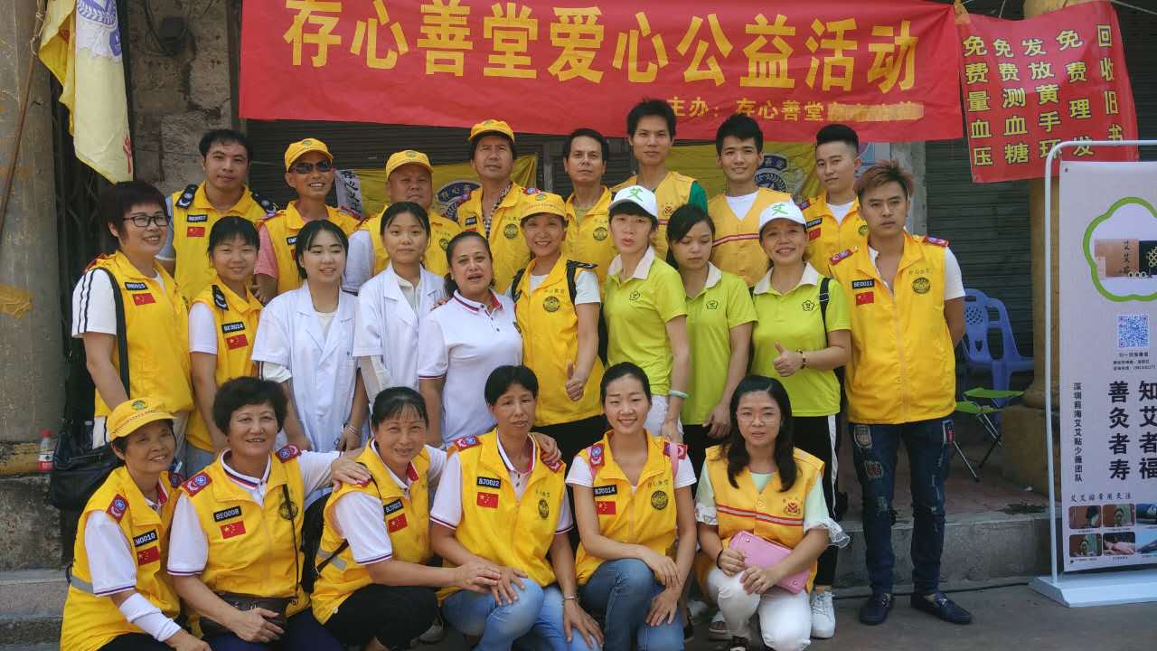 8月20日,炎炎夏日,存心义工联合热心企业一起走进乌桥社区,开展“存心便民爱心公益活动”,为乌桥社区的居民免费量血压、测血糖,将黄手环免费发放给有需要的居民,并讲解使用方法。彩艺精致剪烫到活动现场进行义剪,深圳前海艾艾贴少薇团队义灸,普及健康知识。现场参与人数众多,深受群众赞扬。