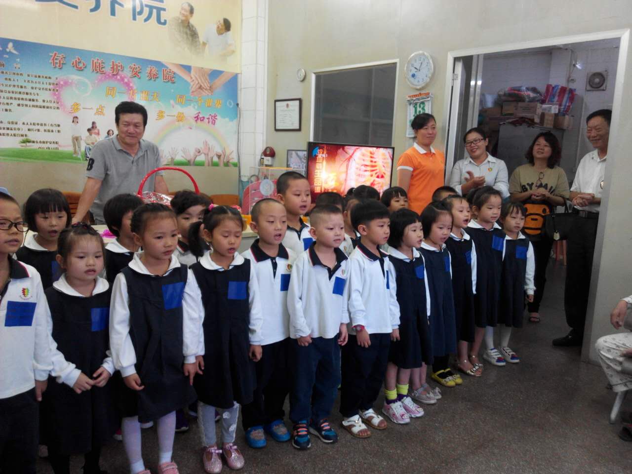 小朋友分别在一楼和三楼表演合唱的节目,让每个楼层的老人们都感受到小朋友的热情,一位年轻时曾当过音乐老师的七十多岁老阿姨,听到这帮小朋友纯真的歌声,就禁不住挥动双手,为小朋友们当起了指挥。
