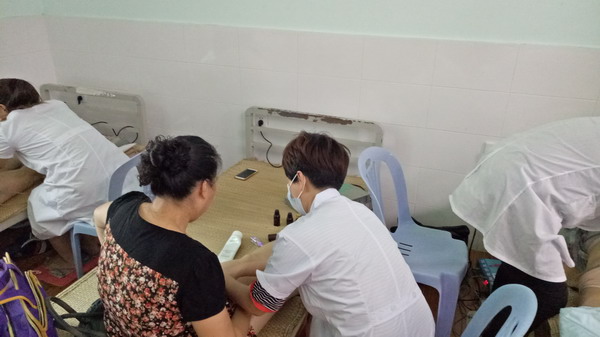 8月26日早上,燕儿馆主特地关上自己位于广场花园西门的健康光波养生体验馆带上护理师来到教养院为护工阿姨们提供无偿护理服务。