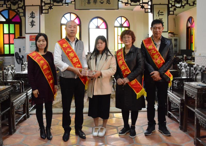 有困难找存心;杨巧之,男,53岁,饶平浮滨人,2017年12月份查出患有运动神经元病,双手、大腿无力和萎缩,生活无法自理,需做胃造瘘手术和装上呼吸机,其妻为了照顾他,无法参加工作,家里还有小孩在读书,无力承担医疗费用,幸得向存心善堂求助并发起存心筹,2018年2月28日,存心筹爱心使者小组在徐英豪组长的带领下,将社会热心人士捐赠的人民币陆万叁仟玖佰多元(63932.00元)善款送到其亲属手中,缓解他们的经济压力。存心在行动,如果您身边有需要帮助,可关注存心善堂公众号或汕头橄榄台进入存心善堂求助,我们就在您身旁。
