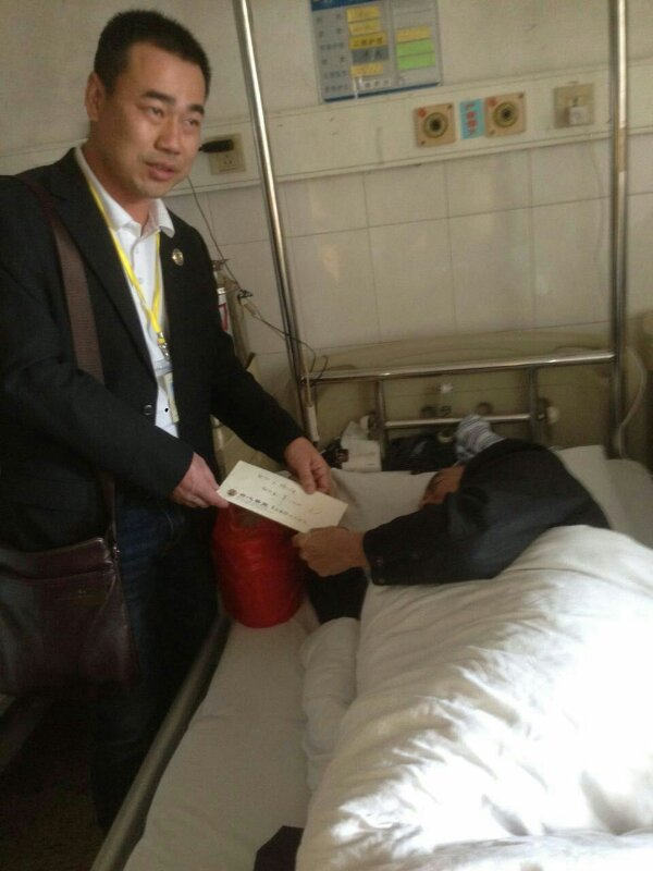 2月7日,存心爱善爱德义工中队一行五人在谢培鑫中队长带队下到市中心医院慰问王睦强,并为其送上助医金1600元、中老年蛋白质粉1瓶、全家福奶粉1瓶;同时向主治医生详细了解王睦强的病情及治疗方案。